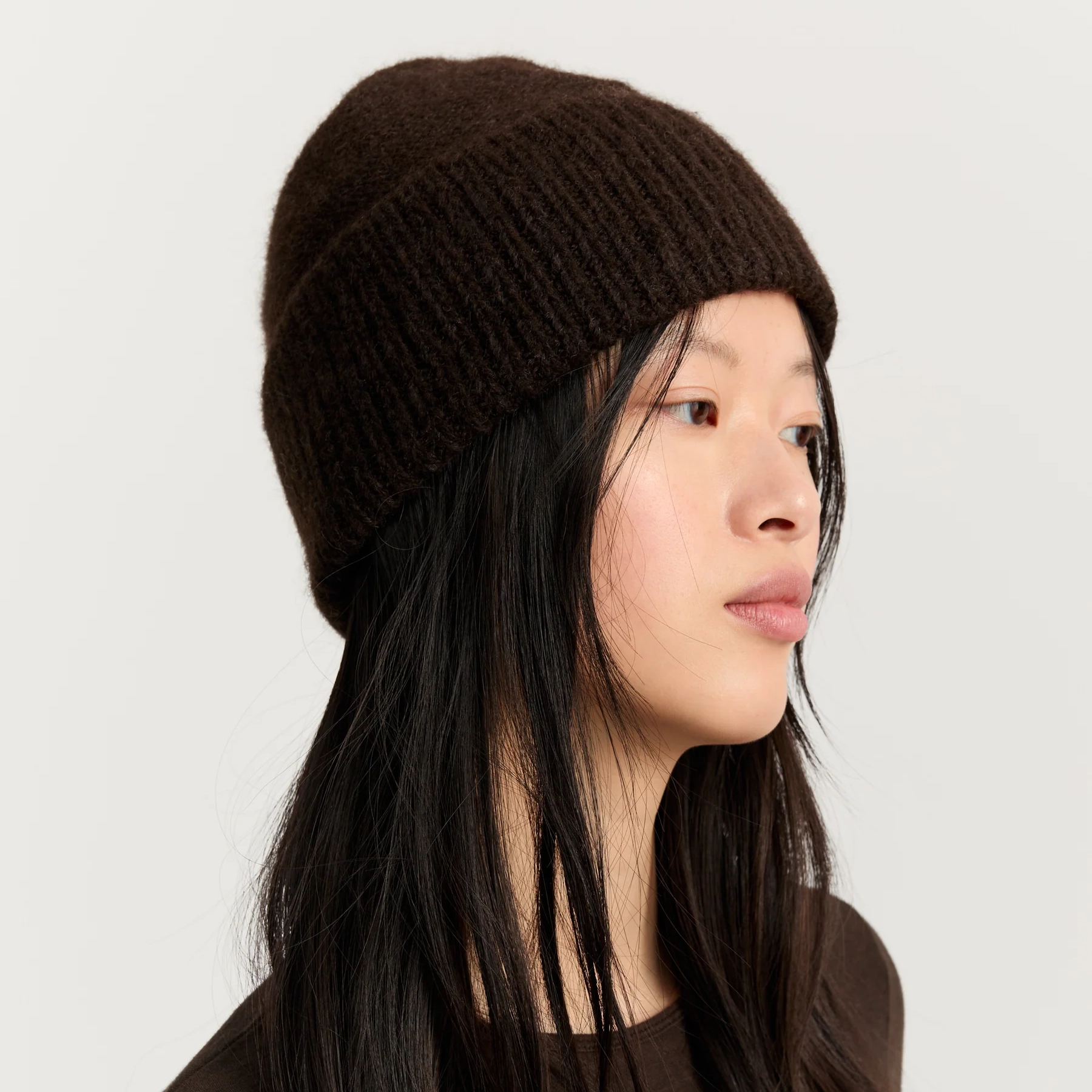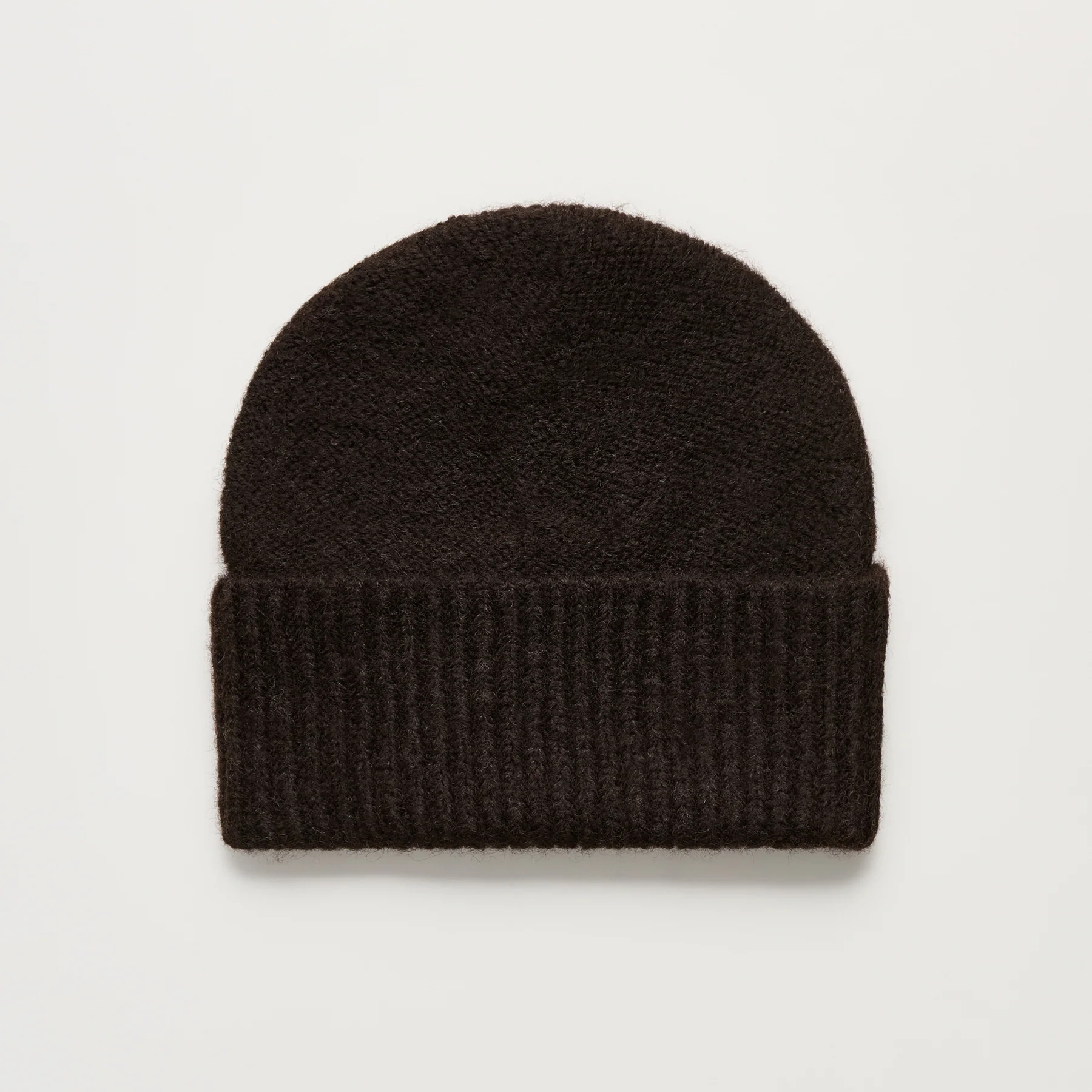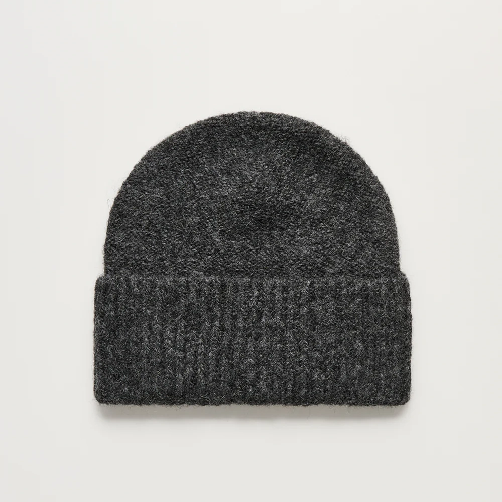 Unisex beanie knitted in an extra soft and fluffy quality of naturally undyed llama wool. Slim fit with a wide ribbed edge that can be folded up. Aiayu Shared is our selection of unisex styles, inspired by the shared wardrobe. Timeless pieces made from our pure signature materials, offered in an extended size range to suit everyone.