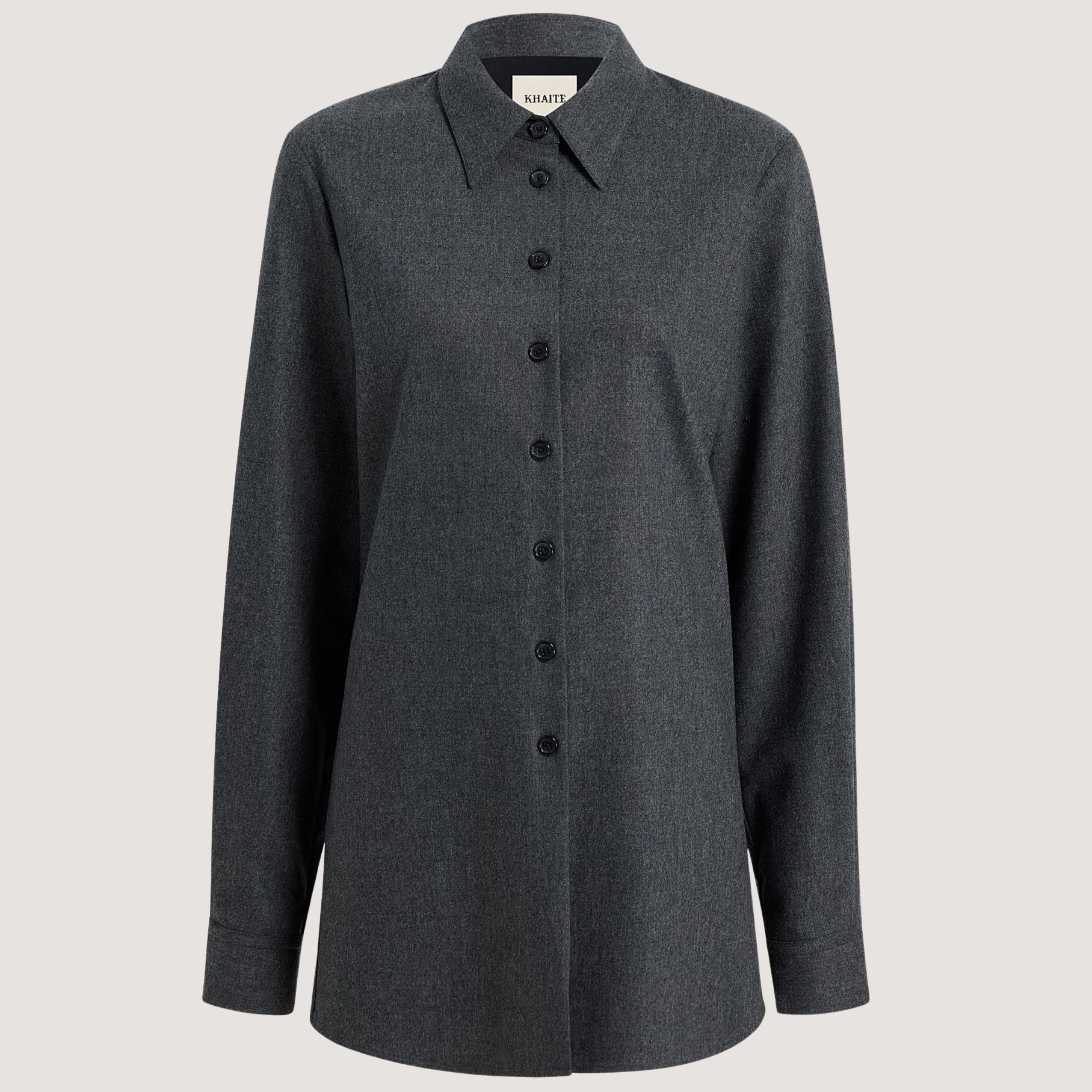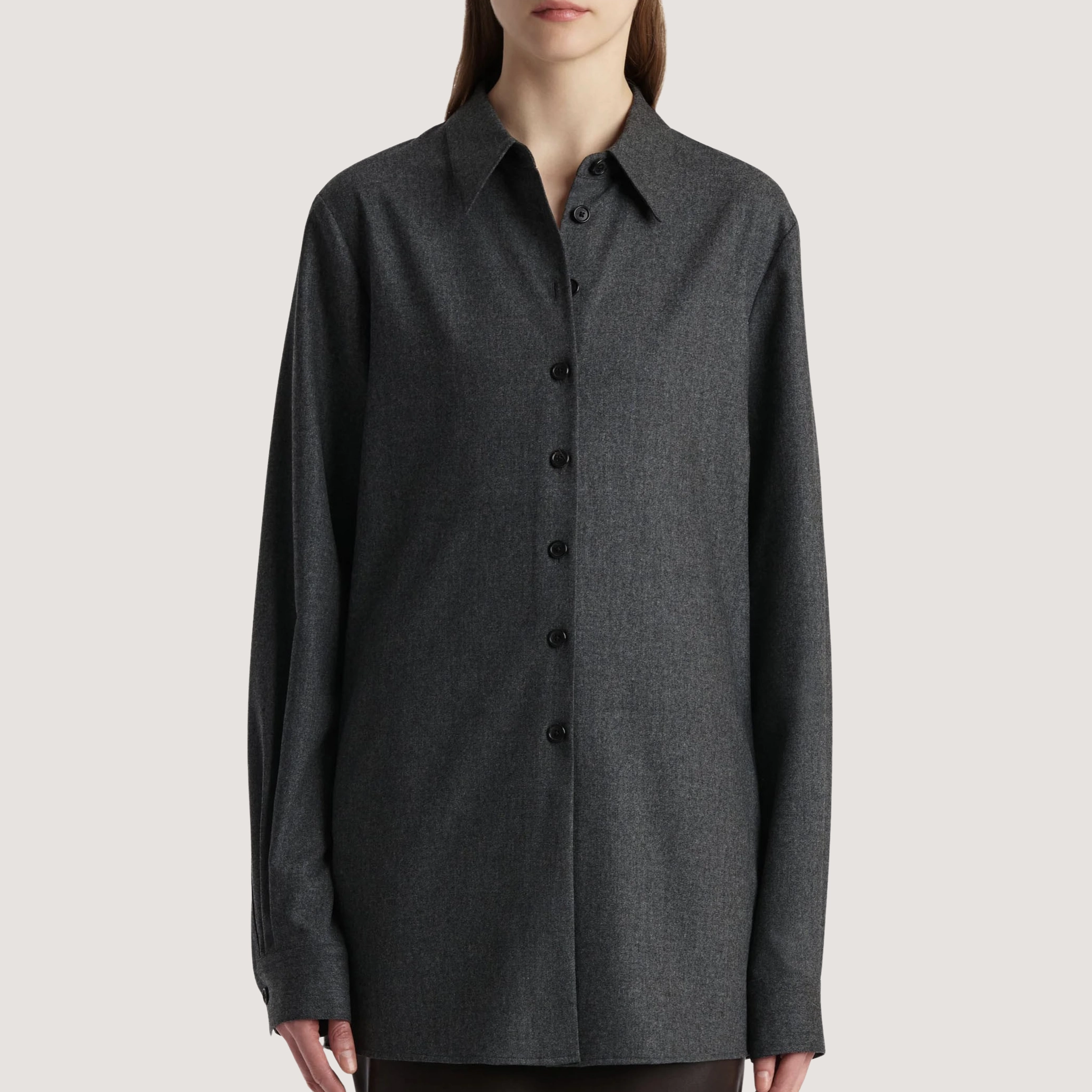 A menswear-inspired button-up designed for relaxed fit in lightweight and luxurious Italian wool-cashmere shirting selected for its beautiful drape. Finishing touches include back yoke with box pleat and single-button cuffs.