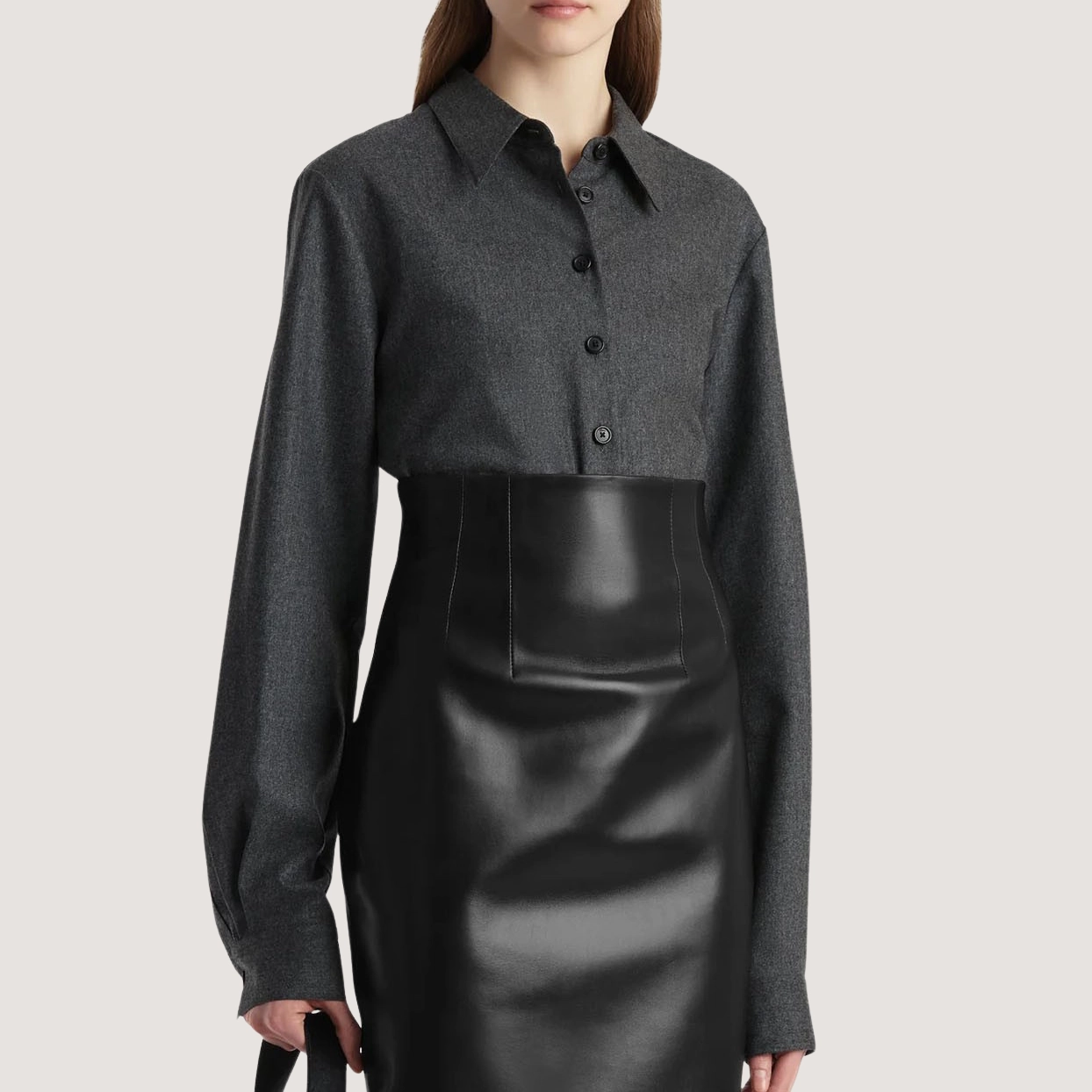 Wool Cashmere Shirting: Lightweight and luxurious Italian shirting crafted in Italy by blending virgin wool with cashmere and a touch of stretch. Selected for its ability to hold structure with a romantic drape. Soft and comfortable against bare skin.