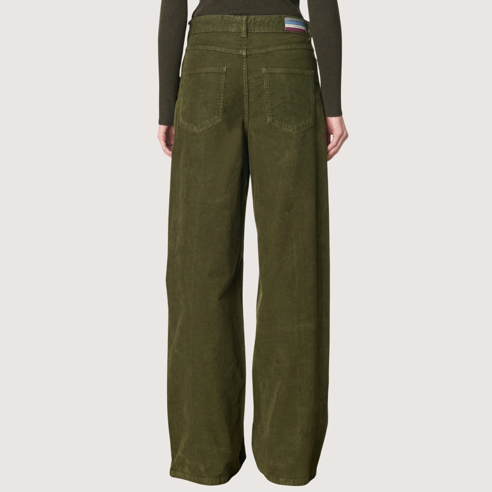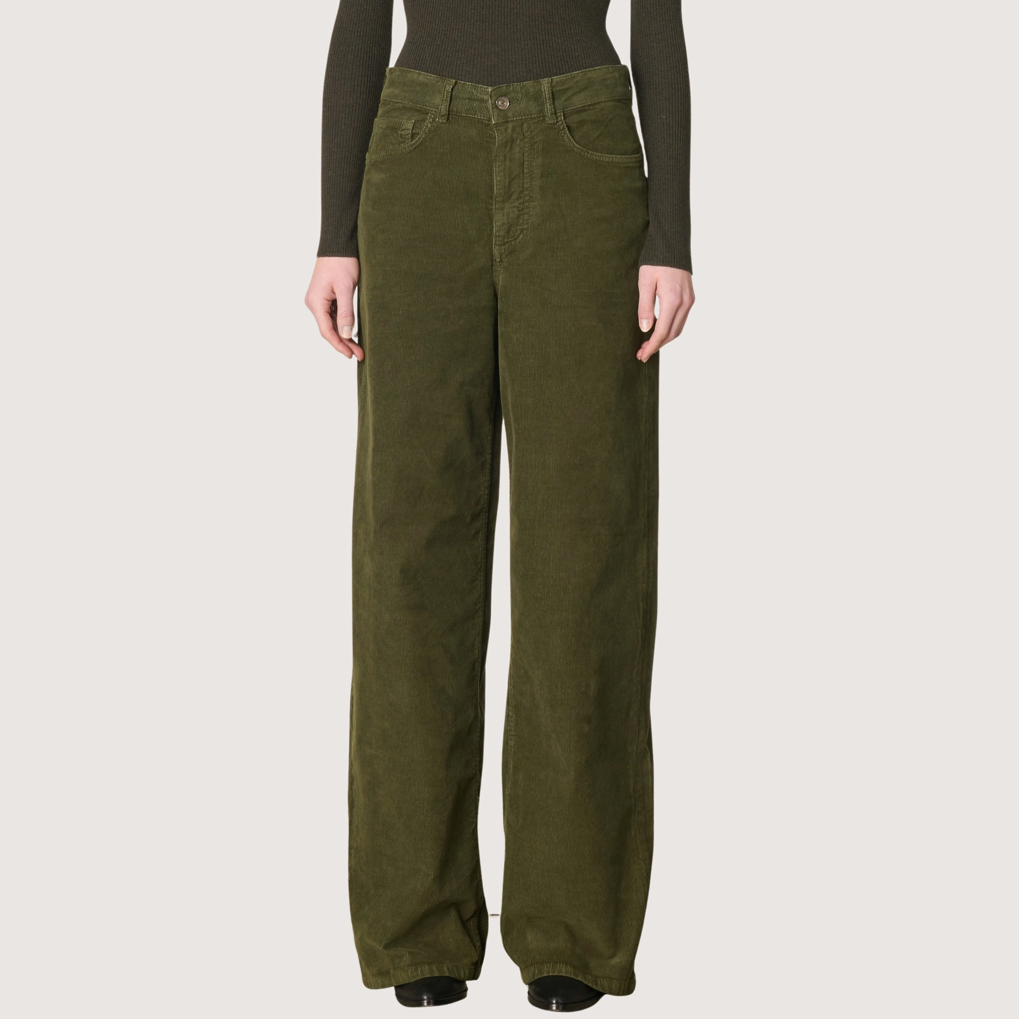 High waist. Five-pocket jeans style. Zip and button closure. Corduroy cotton. Contains elastane