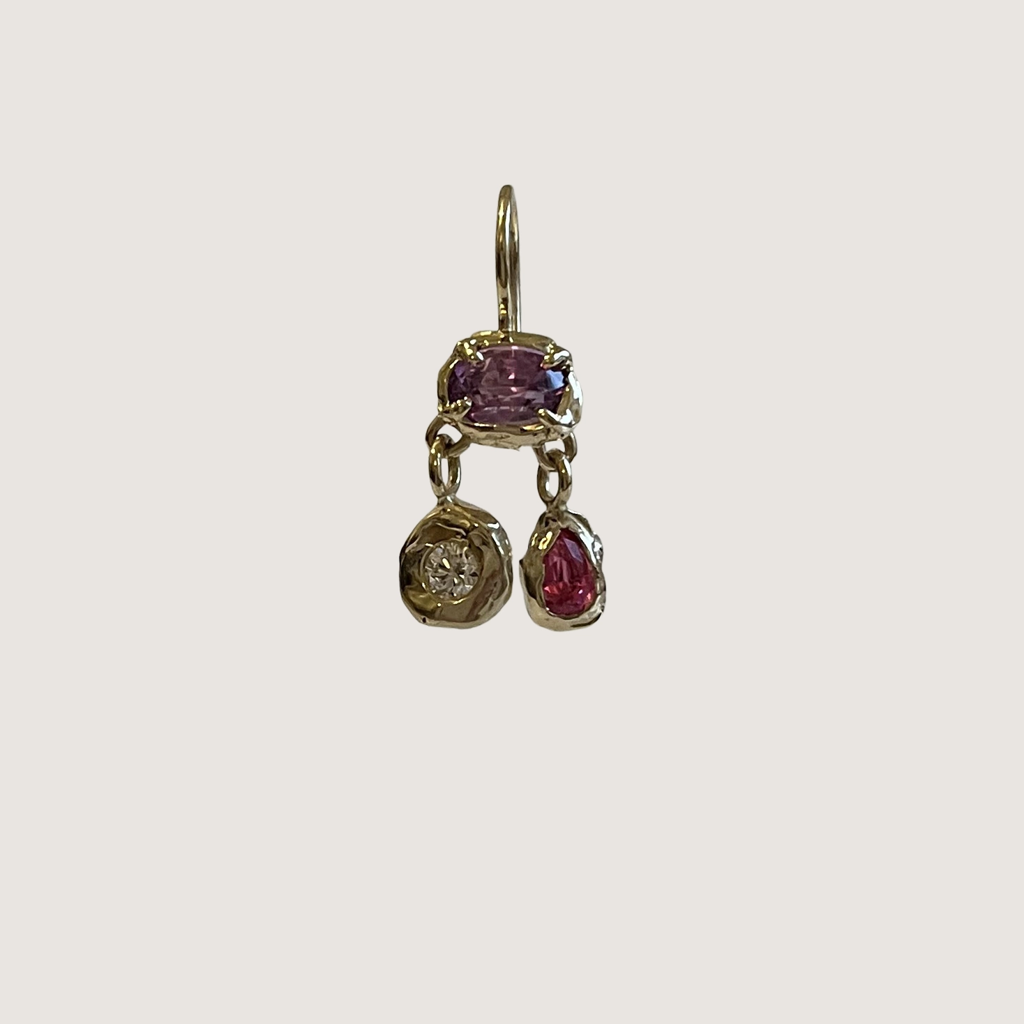 14 carat gold, set with 0.28 carat pear pink spinel and 0.15 carat TW/VVS diamond.