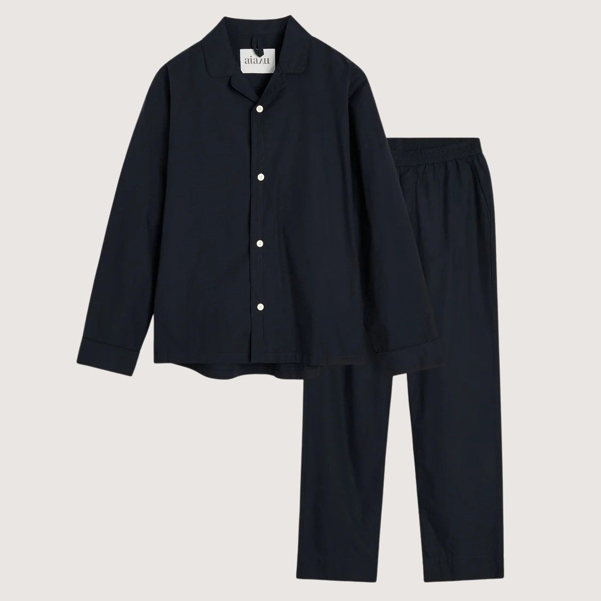 An elegant, two-piece pajama set made from soft and lightweight organic cotton. Designed in a relaxed fit inspired by classic menswear styles.