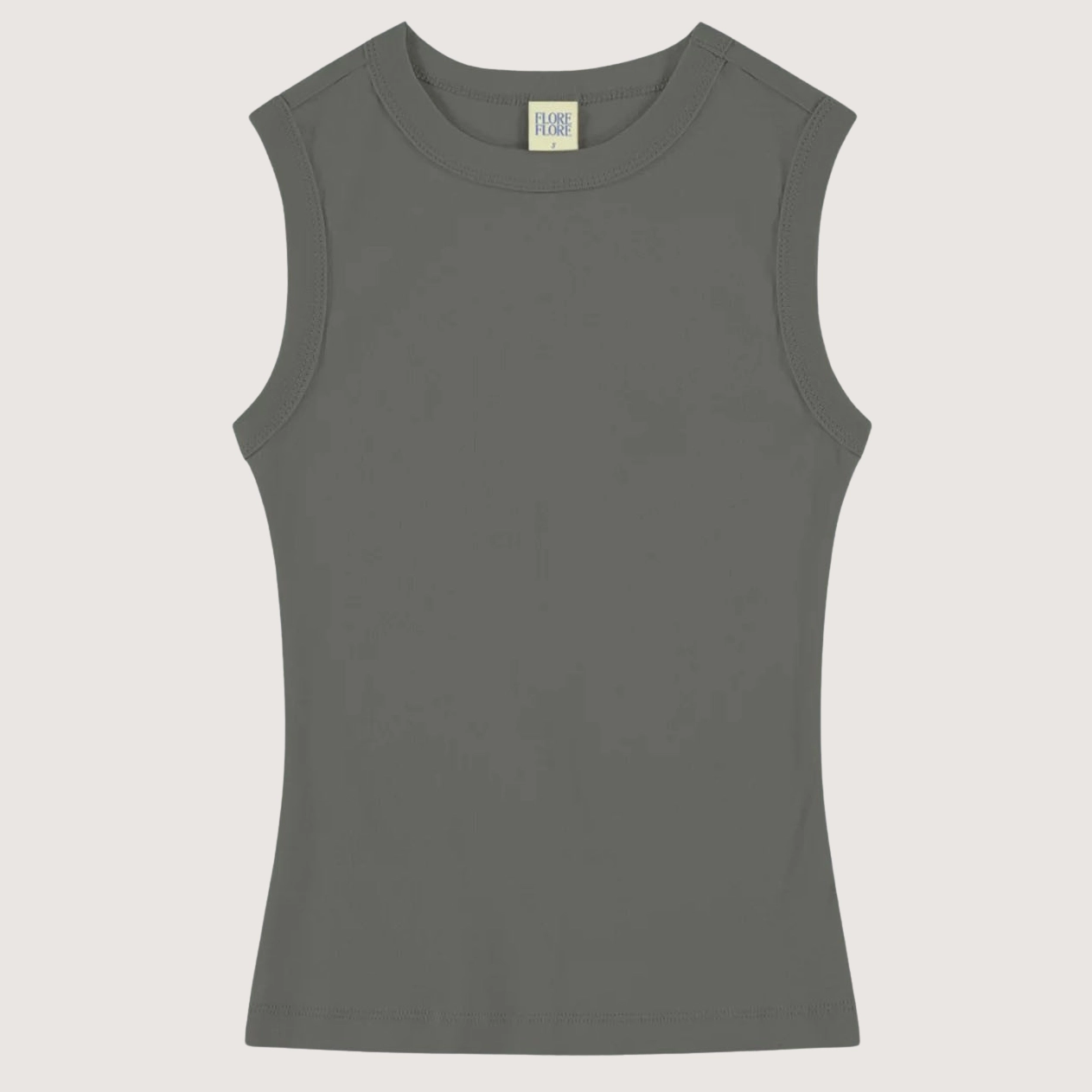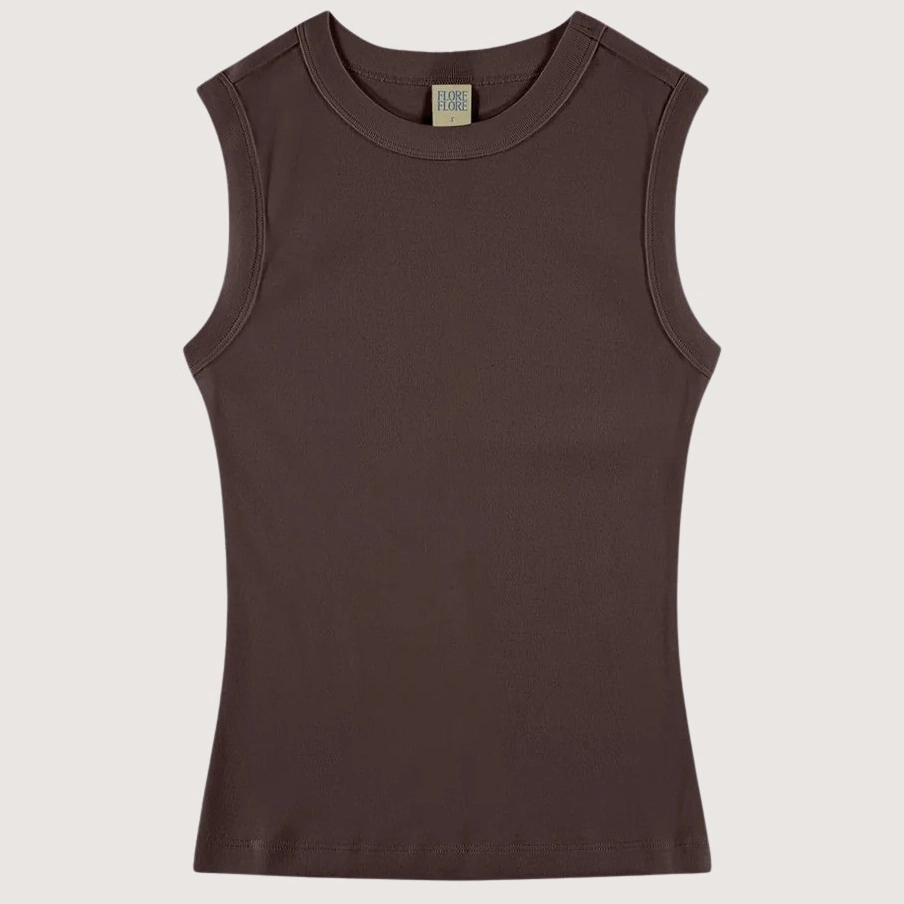 Description A fitted crew neck tank with a double stitched cut-off seam on the back. It has a banded neck and scooped out armholes for a more modern look. Made in a medium weight organic cotton baby rib.