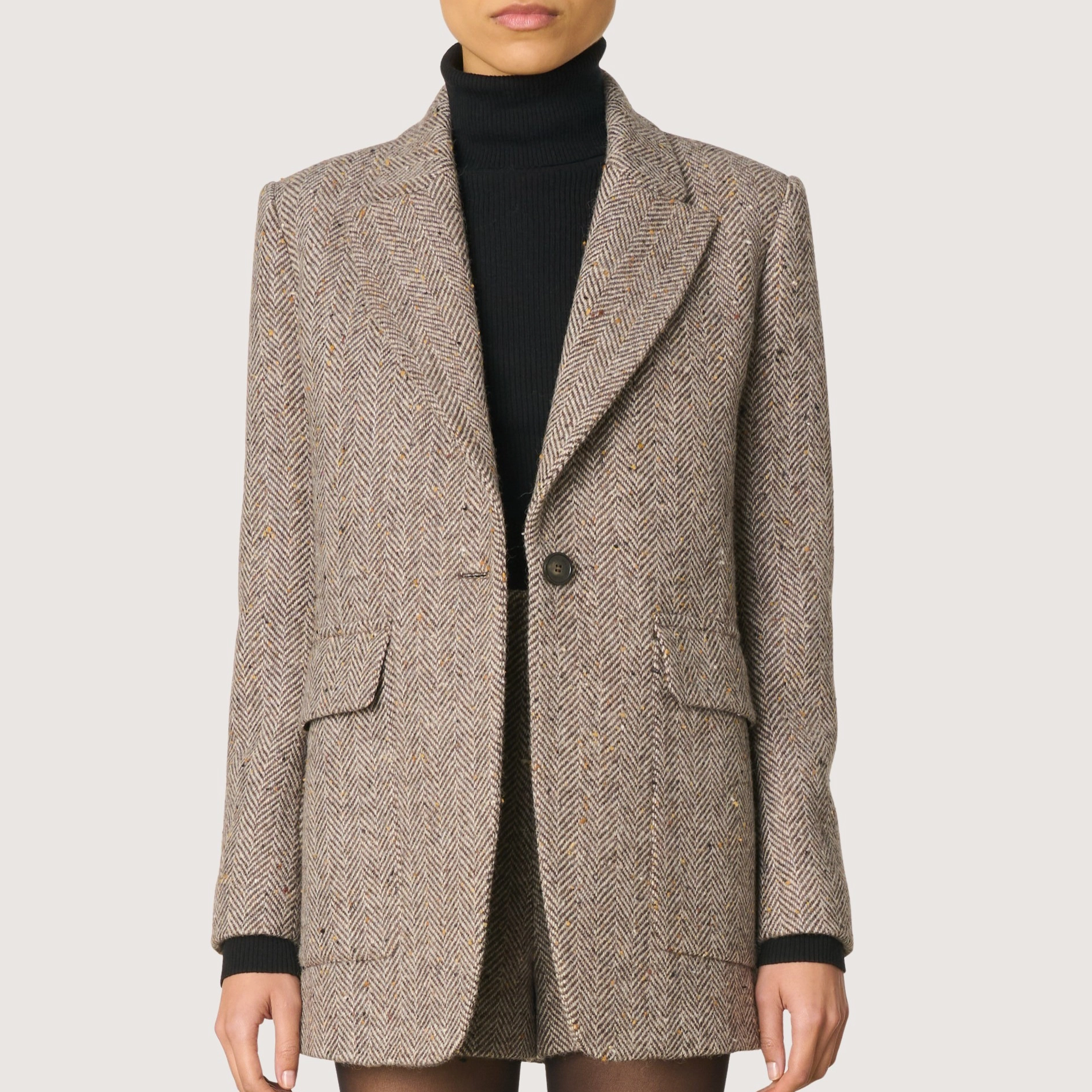 Blazer in wool blend. Straight, slightly oversized cut. Single-button fastening. Flap pockets. Fully lined