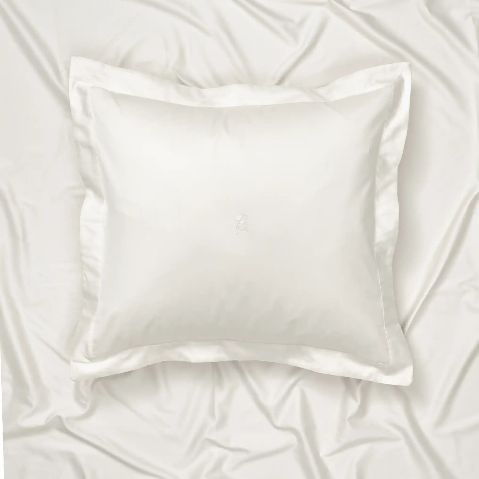 Fountain Blossom takes its inspiration from the hand-painted floral motifs from well-preserved 18th-century pattern illustrations. In this refined variation, the composition is reduced to a single, tone-on-tone embroidery placed gently at the center of the pillow.