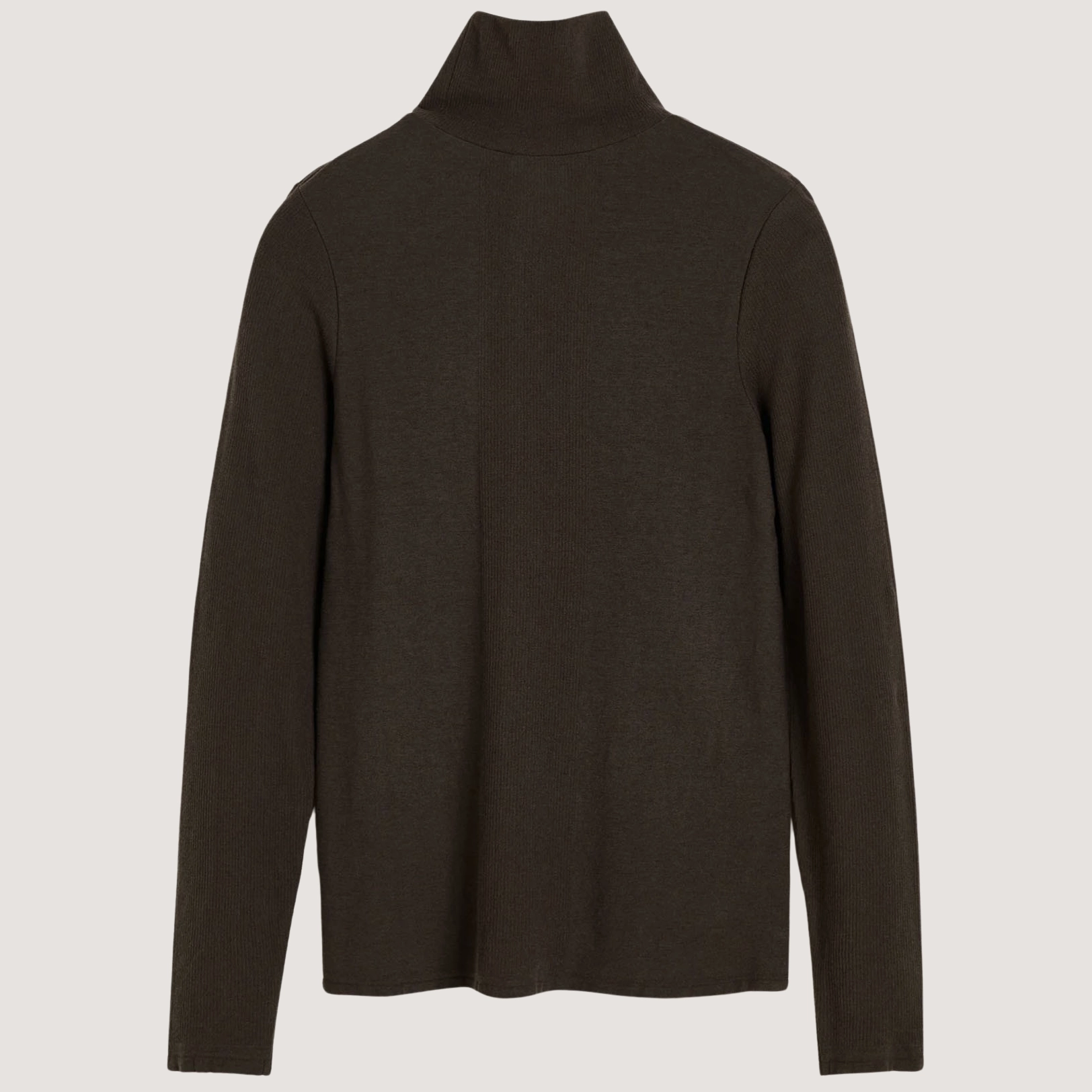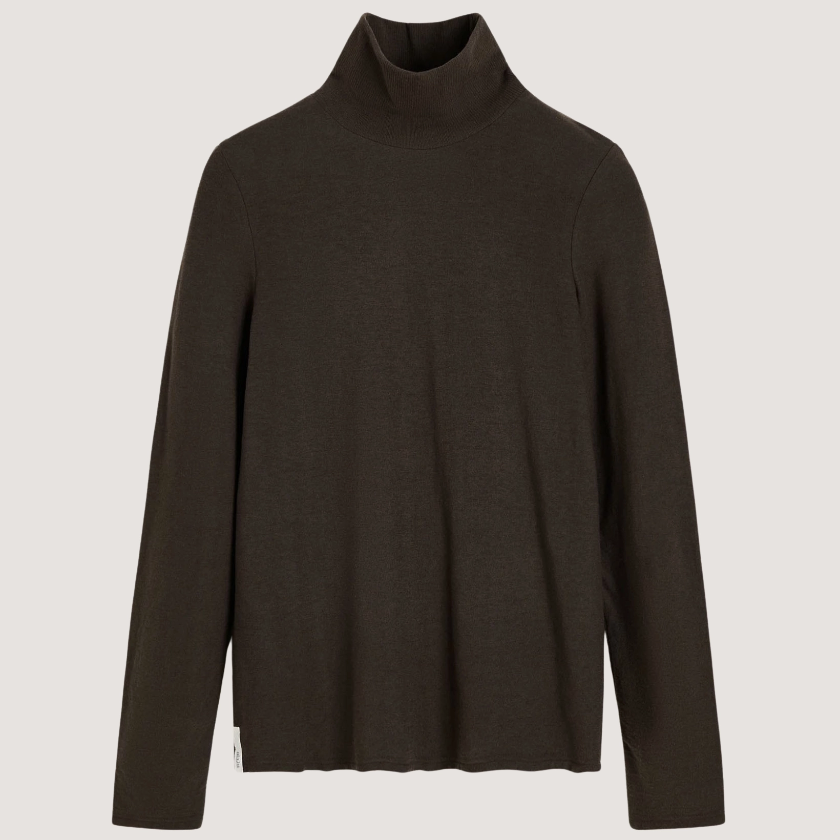 Description A classic high-neck blouse, made from a soft blend of cashmere and organic cotton.Designed with a fitted fit, long narrow sleeves, a high neckline, and ribbed details along the sleeves and side panels, adding a relaxed and comfortable feel. The blouse is ideal as a warm and soft layer for all seasons.