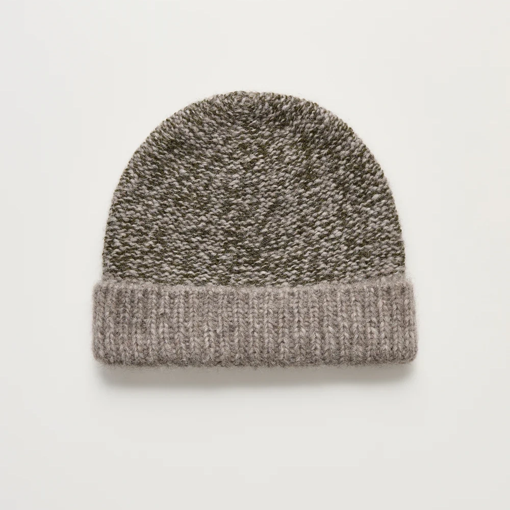 A soft and warm beanie, hand-knitted in a fluffy quality made from premium marled yarn. Designed in an oversized fit with a wide ribbed edge that can be folded up.