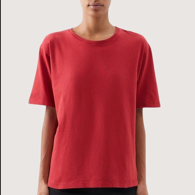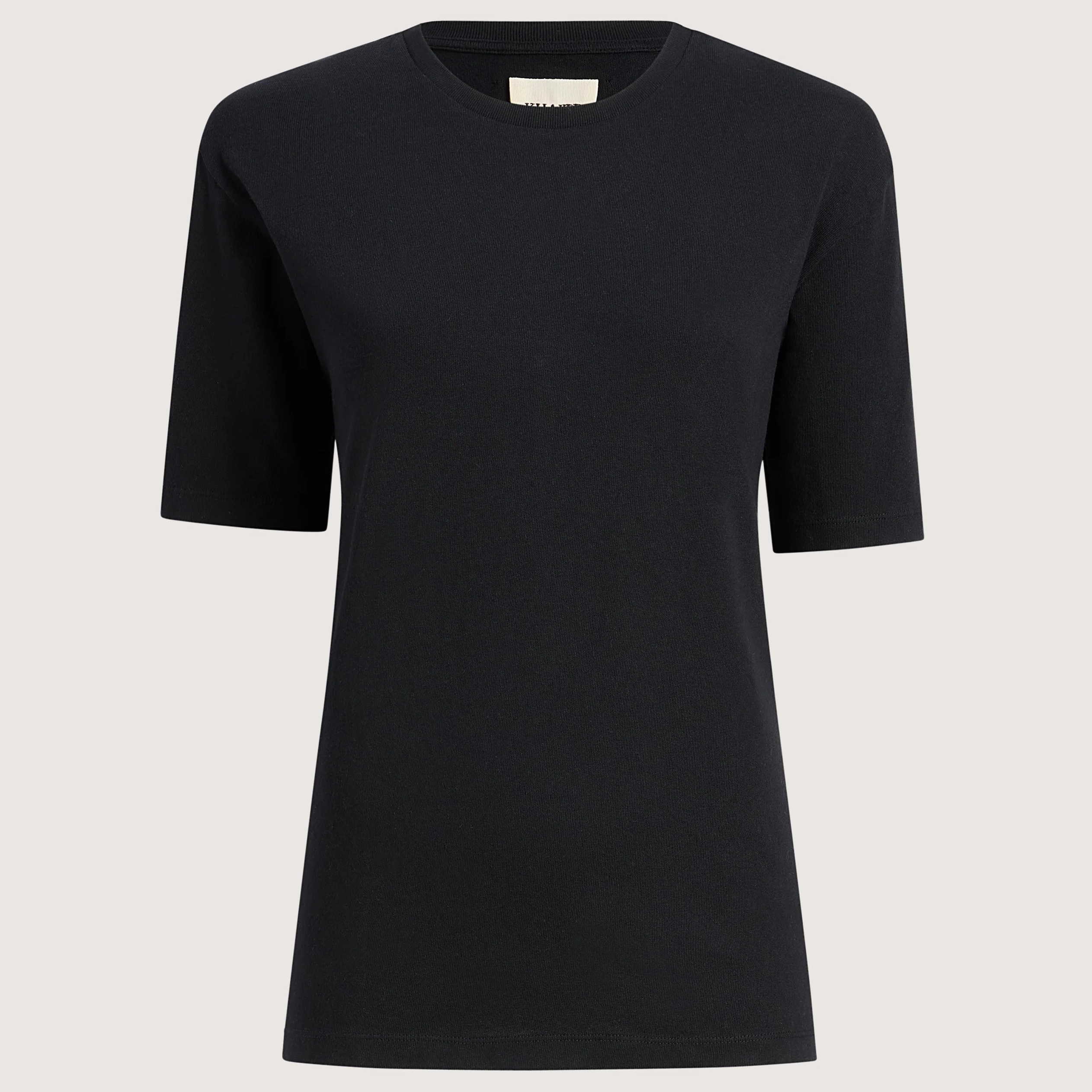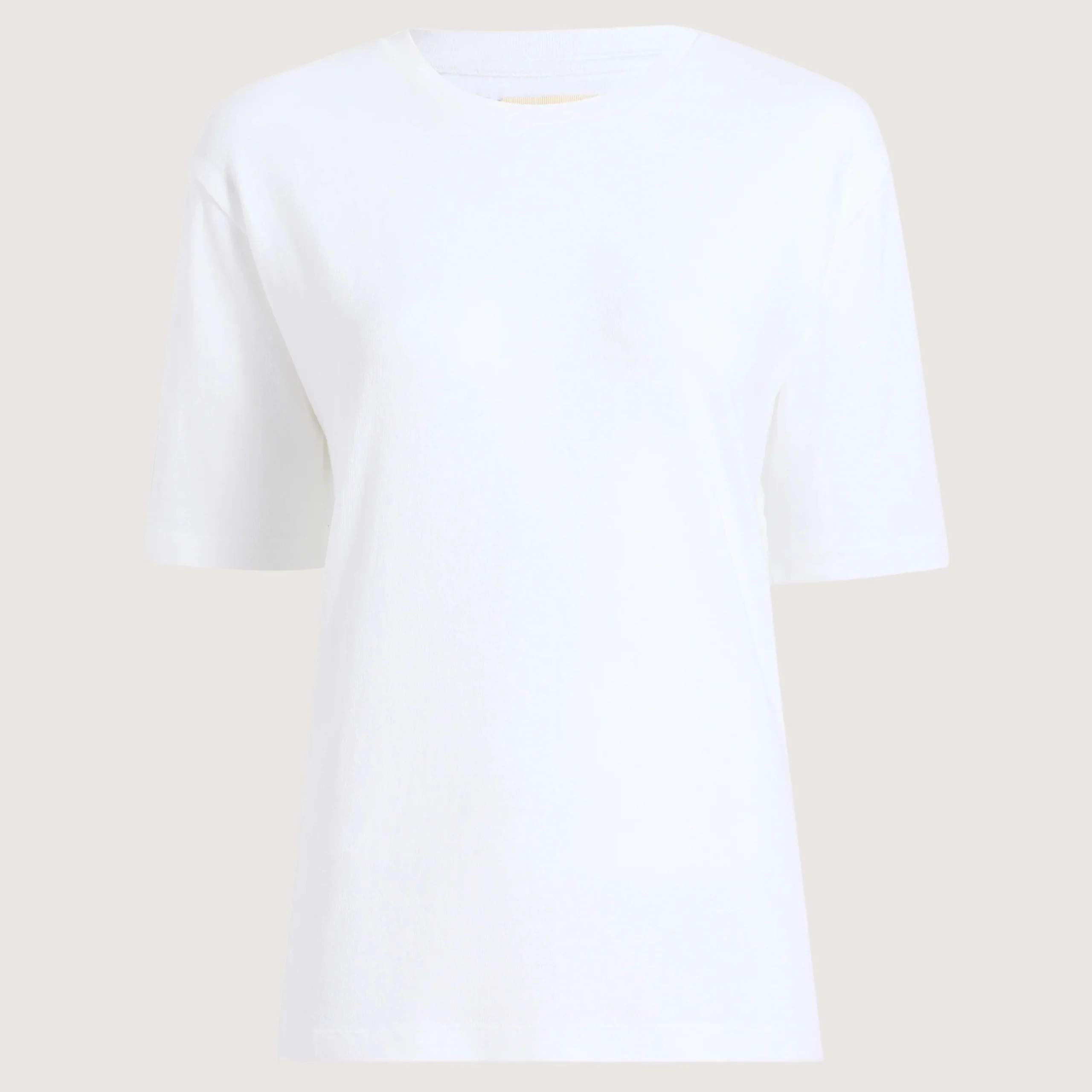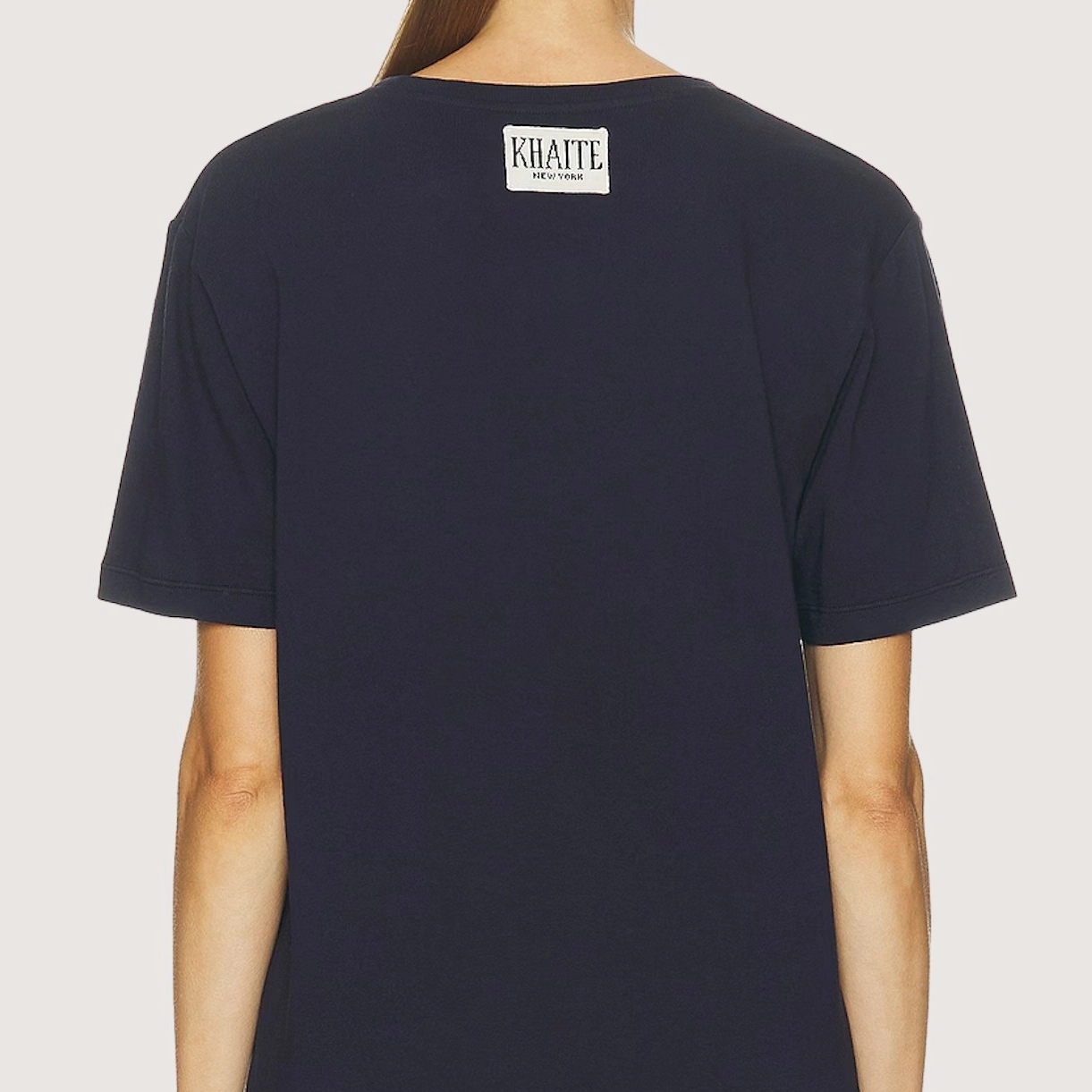 A soft crewneck tee relaxed by slightly dropped shoulder seams. The hand-appliquéd cashmere label is intarsia-knit with the KHAITE logo.