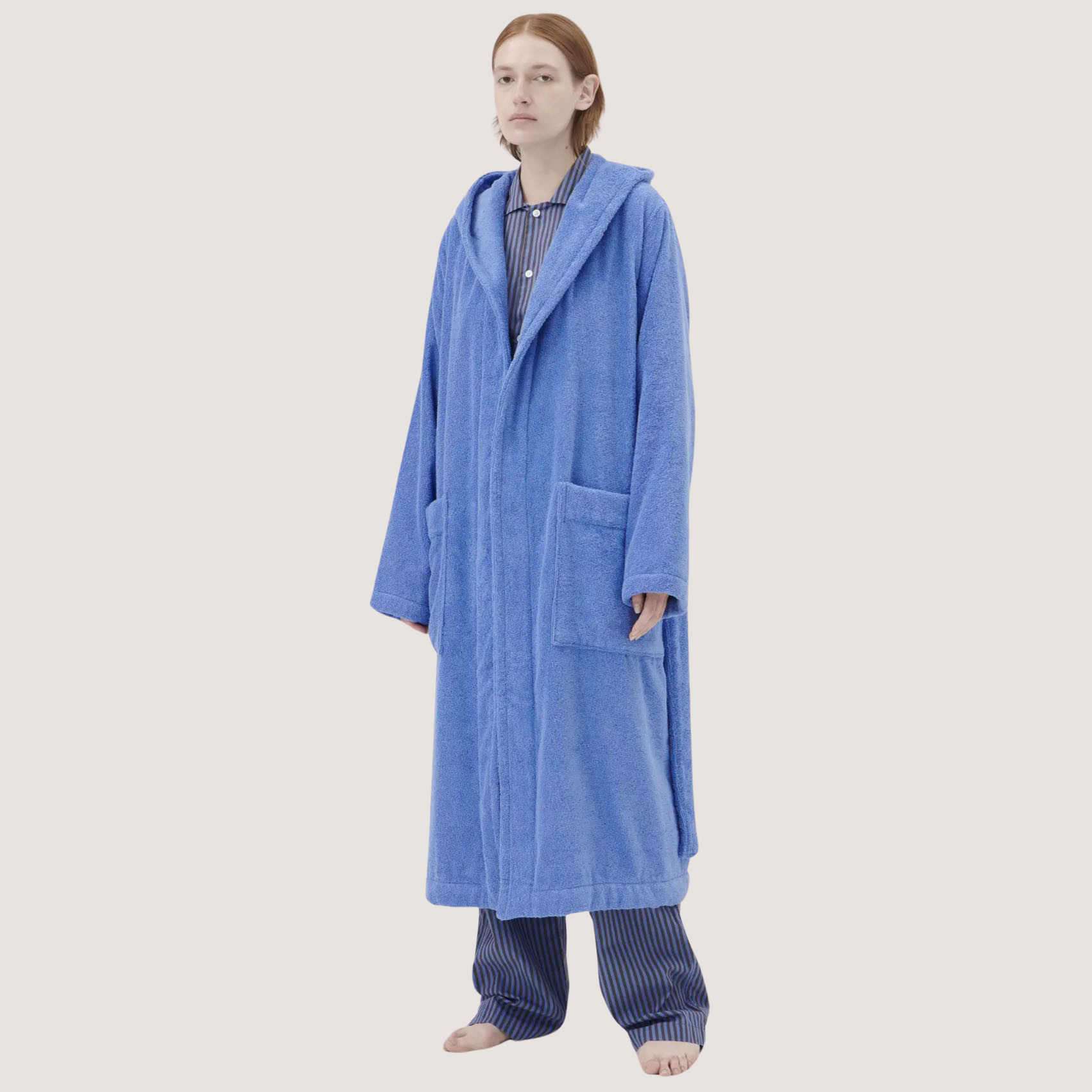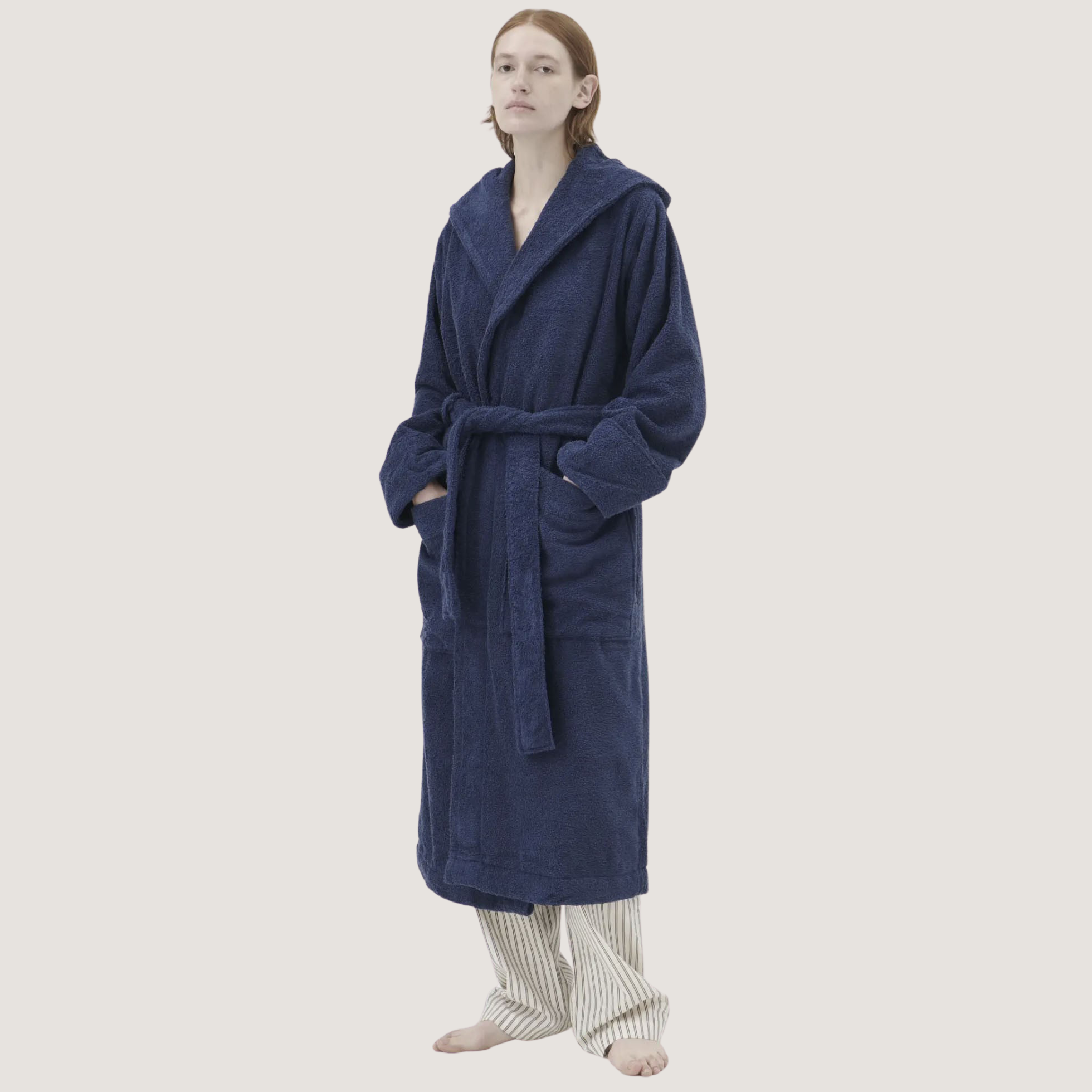 The hooded bathrobe collection is crafted from absorbent towelling fabric with a spacious cut for comfort after bathing. The extra-long cotton yarns used are twisted to provide a superior touch, while the fabric’s dense weave ensures longevity.