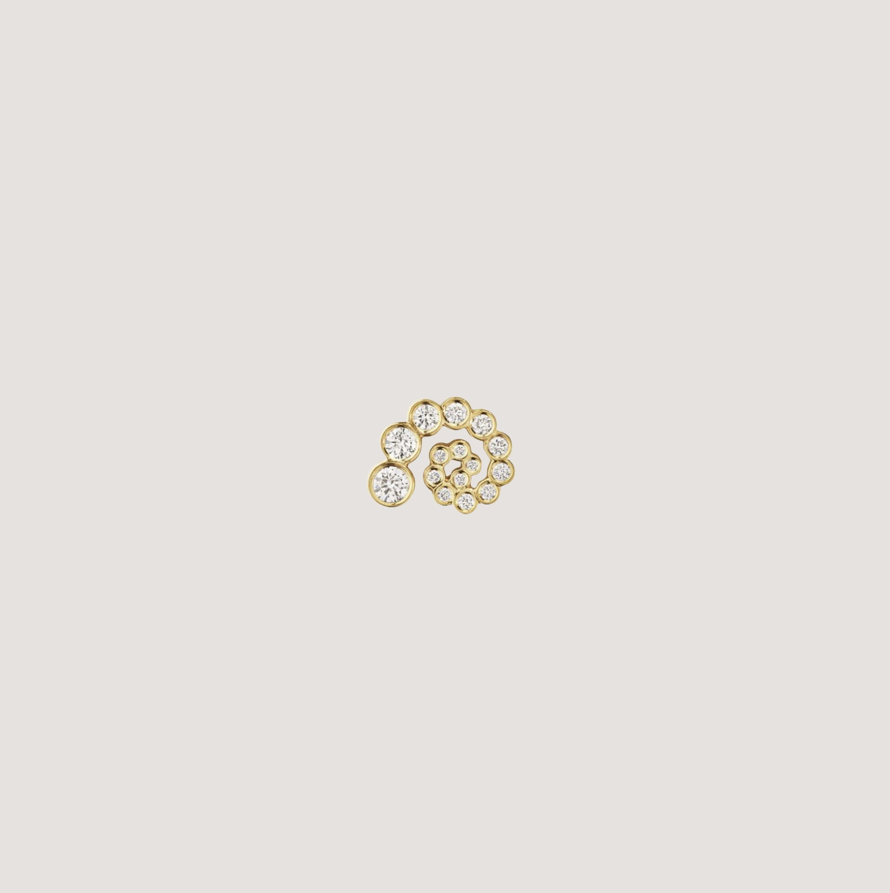 The Petit Rêve Escargot earring features a delicate swirl of graduating diamonds set in a bezel setting. Designed to be worn with versatility as the earring carries a natural fluidity.