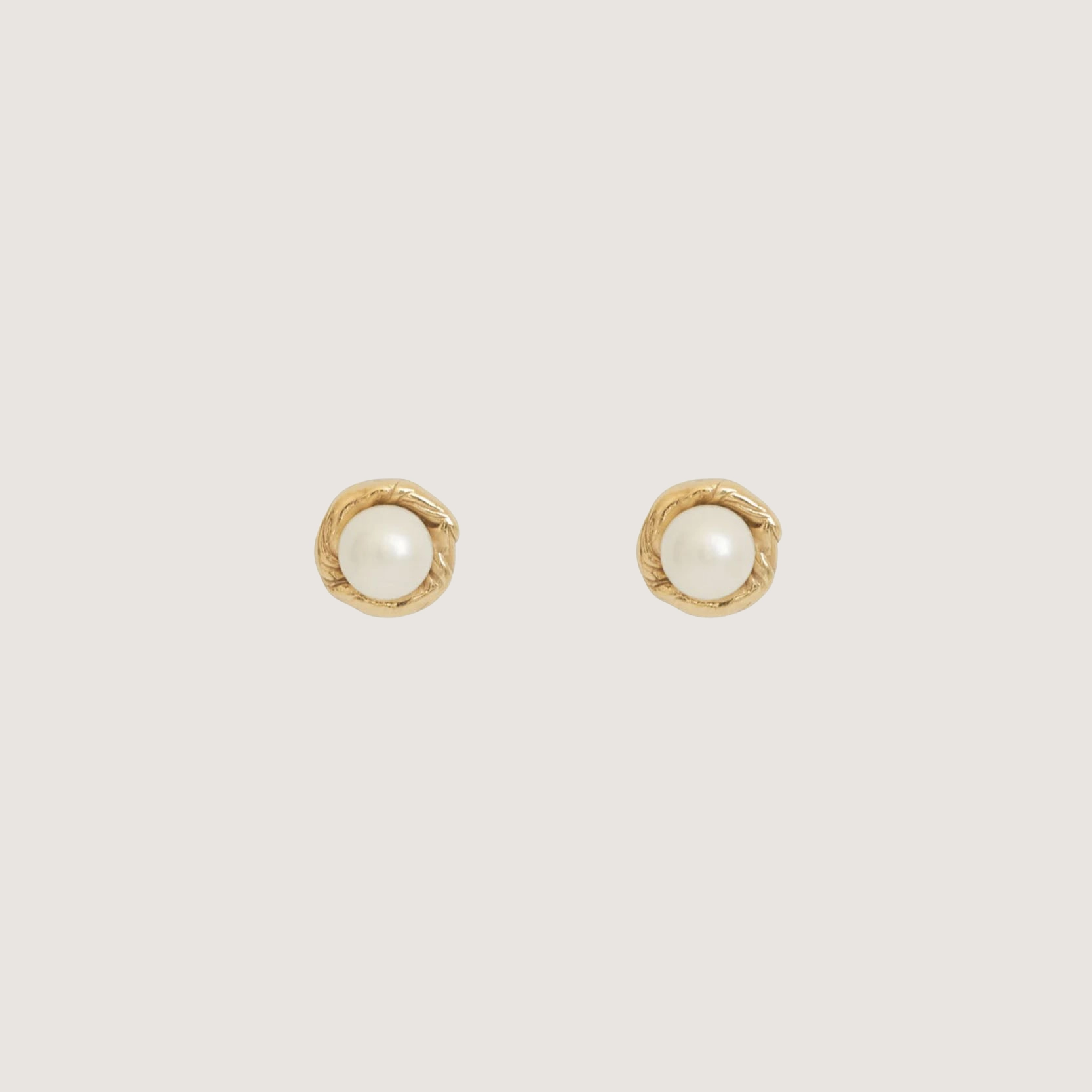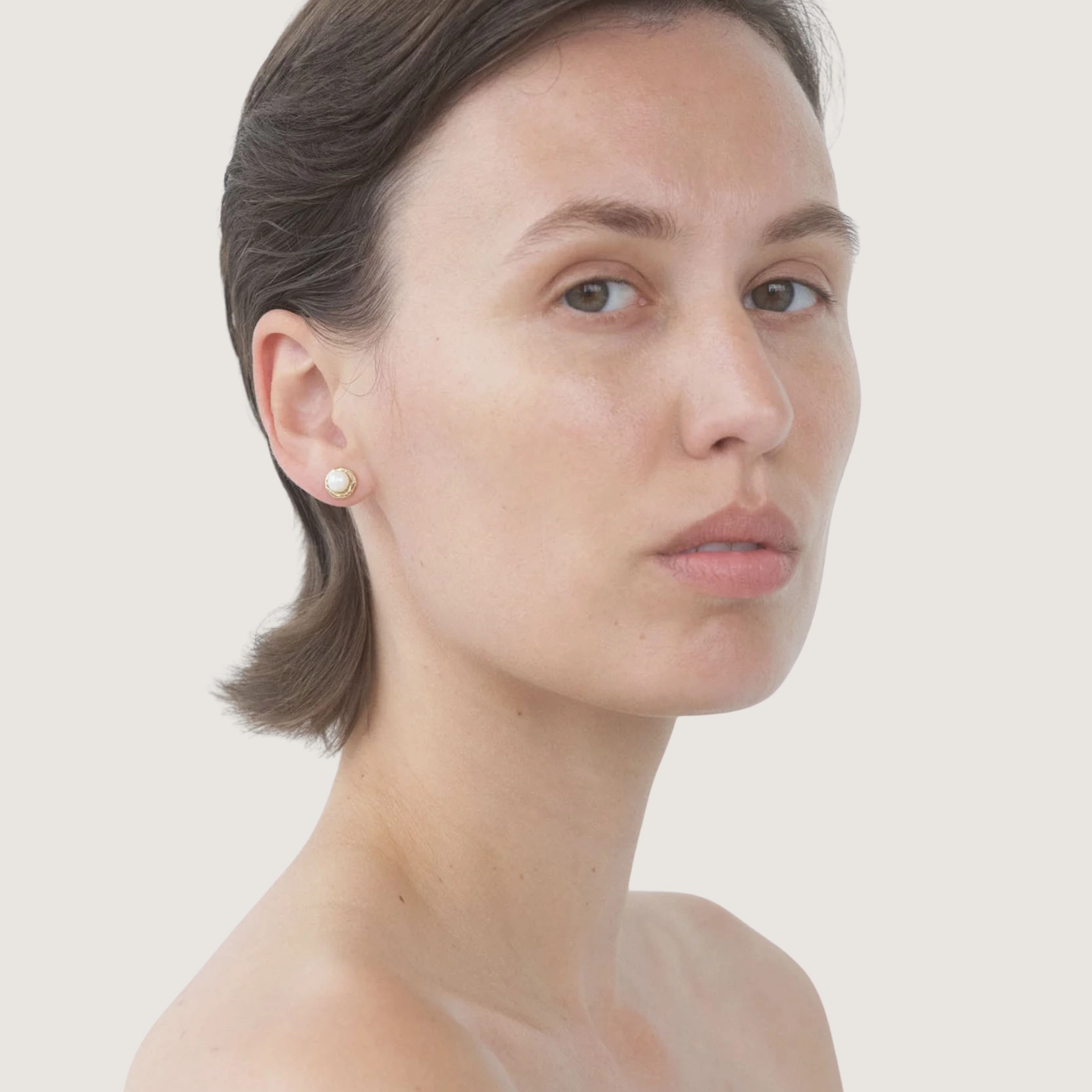 a pair of timeless earrings made in recycled 14k yellow gold featuring round akoya pearls
