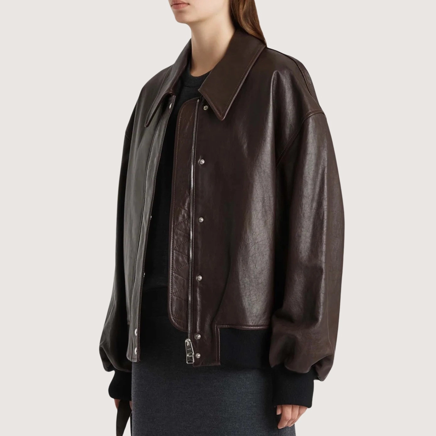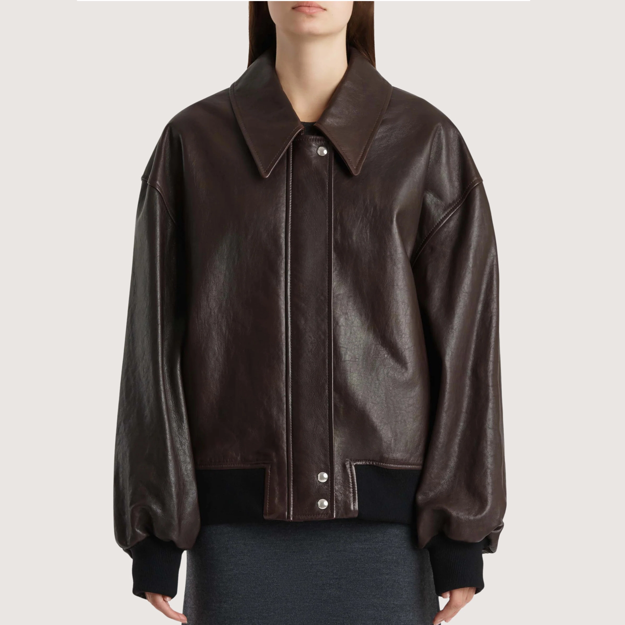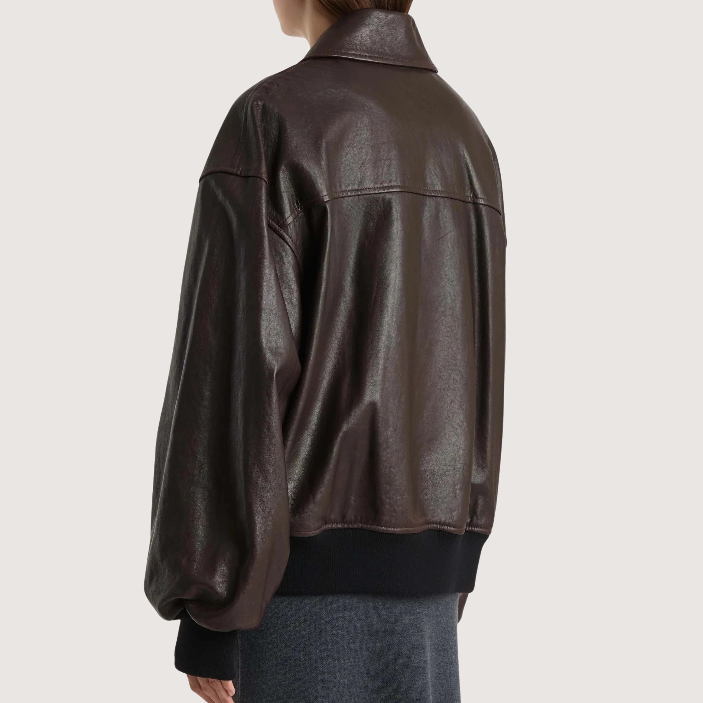 Description A refined yet relaxed bomber in supple and robust lambskin. With rib-knit insets at cuffs and hem. Zippered front concealed by placket. Twill lining.