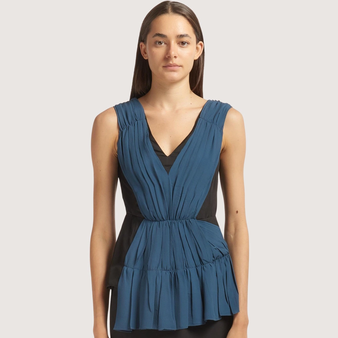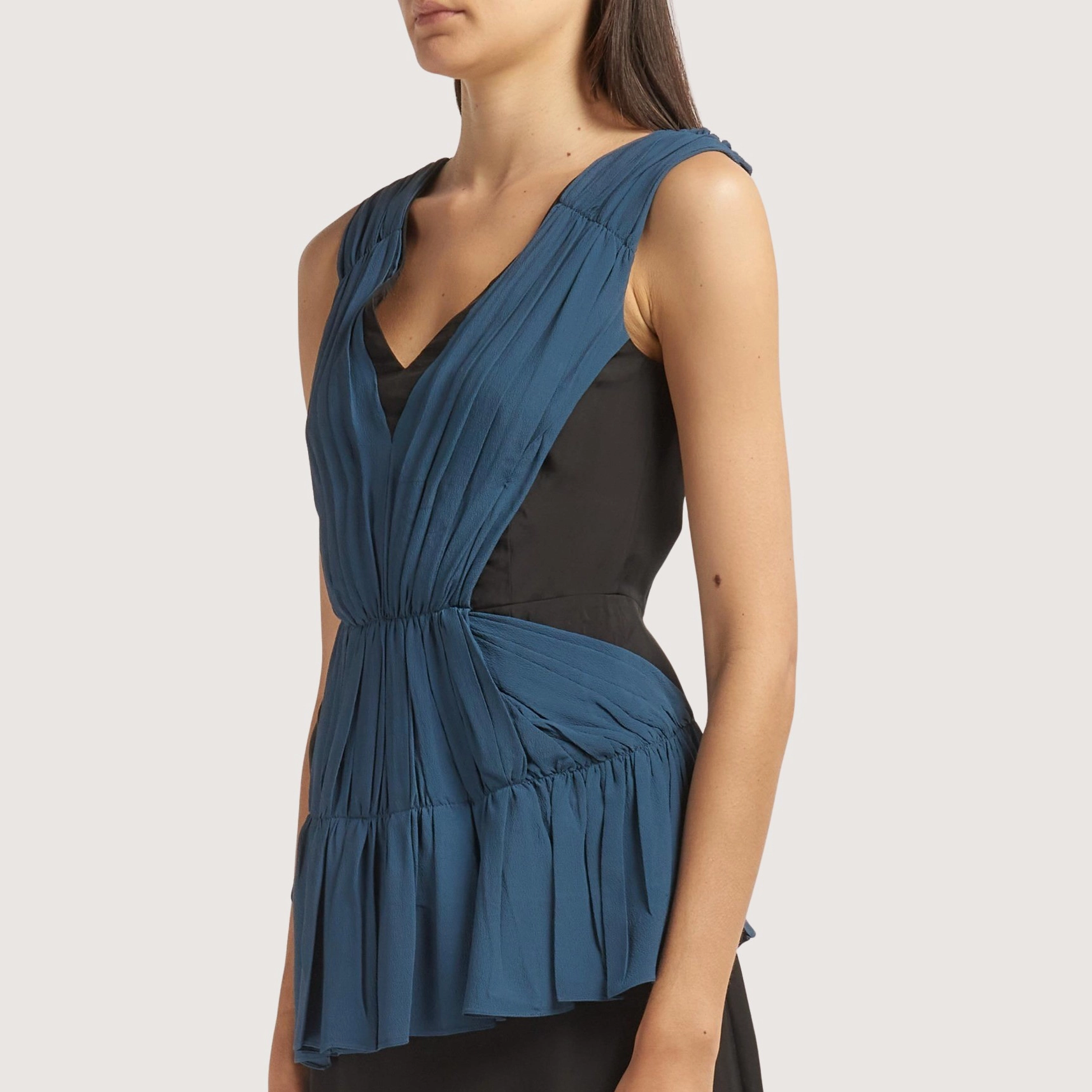 Composition: 100% viscose with 50% silk, 50% acetate contrast